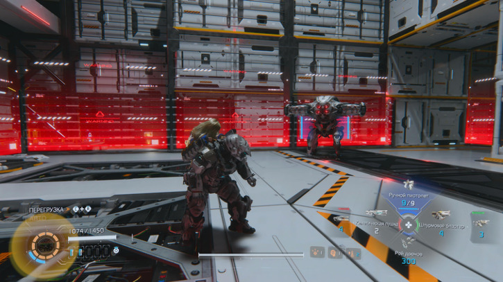 - Местами быстрее вынести вражин будет через перегрев, так как взлом можно спамить, а патроны для основного оружия долго откатываются. Ставим режим взлома "